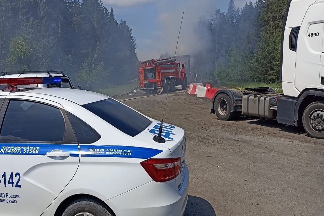 Движение возле Ревды восстановлено. Фото: пресс-служба ГИБДД Свердловской области На Пермском тракте восстановлено движение в сторону Екатеринбурга после ДТП с горящим грузовиком.