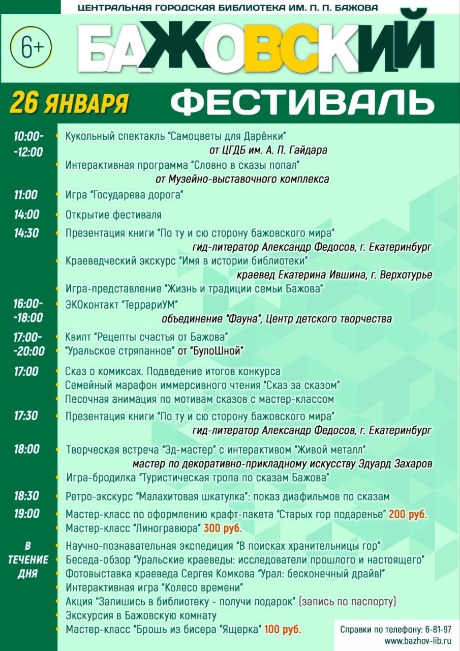В пятницу, 26 февраля, в городской библиотеке им. Бажова пройдет VI Бажовский фестиваль,