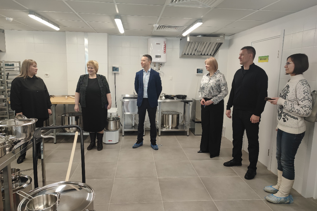 Готовить еду для воспитанников будут непосредственно в детском саду. Для этого здесь построен пищеблок с помещениями для хранения сухих продуктов, овощей, холодильной камерой, комнатой для мытья овощей, нескольких цехов для приготовления пищи, а также помещением для раздачи блюд.