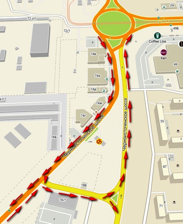 Новая схема движения на Черноисточинском шоссе. Иллюстрация: 2ГИС / мэрия Нижнего Тагила