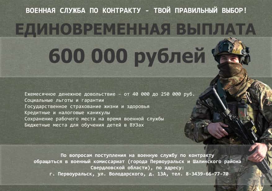 — Выплата будет способствовать повышению уровня социальной защищенности семей граждан, заключивших контракт о прохождении военной службы с 15 июня по 31 декабря 2024 года, — сообщили в министерстве социальной политики Свердловской области.