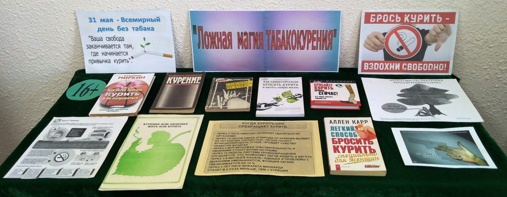Книги, брошюры, информационные листки, представленные на выставке «Ложная магия табакокурения» в Центральной библиотеке им. А. С. Попова, дают всю информацию о пагубном действии никотина на организм человека. Главная цель выставки — просветить, помочь отказаться от вредной привычки.