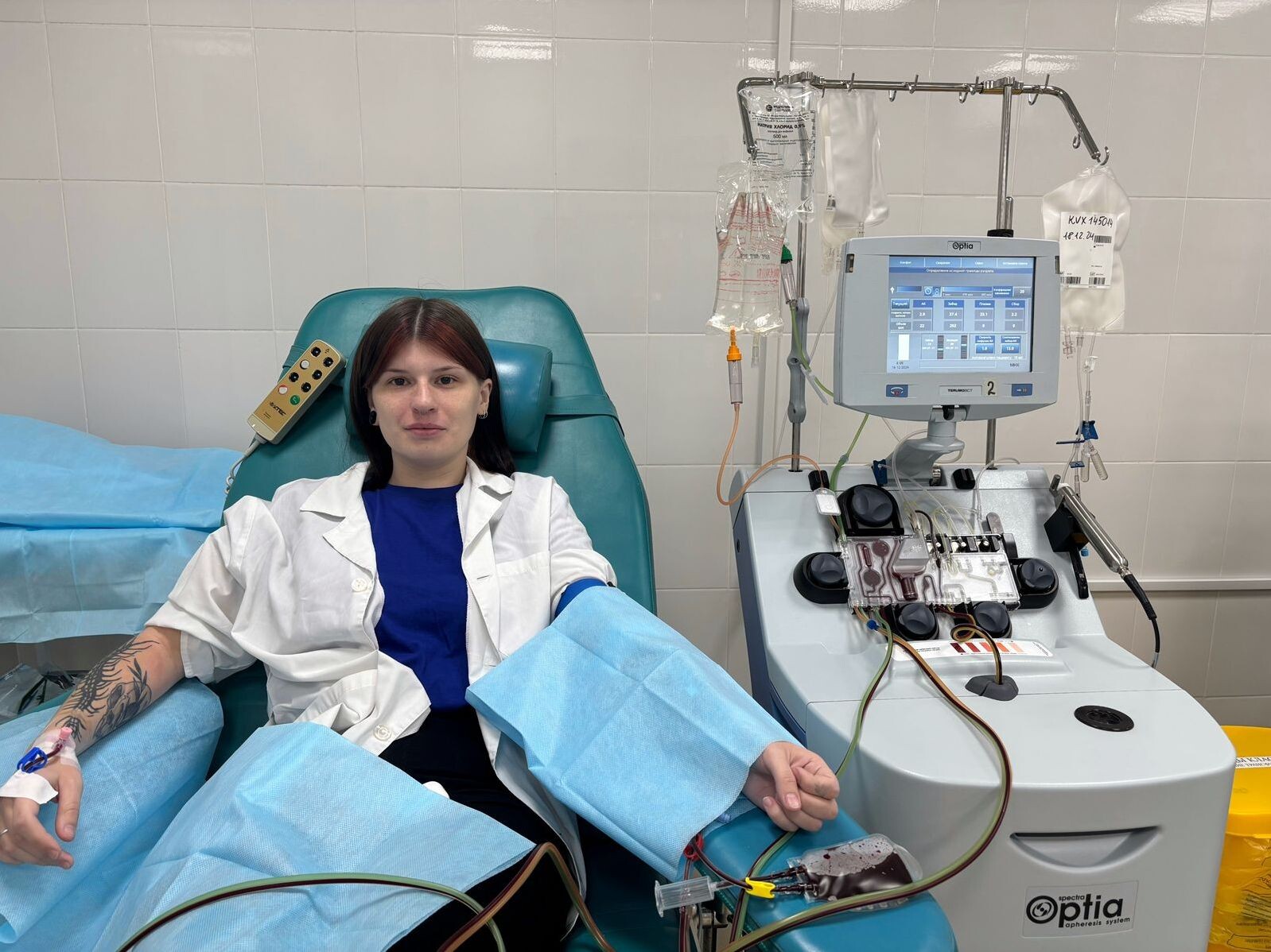 - На четвёртый день после очередного стимулирующего укола у меня взяли кровь, чтобы определить, образовалось ли нужное количество стволовых клеток. На пятый день я отправилась на донацию. Процесс очень серьёзный, поэтому все действия врачей и медперсонала отработаны до мелочей, - поясняет девушка. - Сначала измерили давление, температуру, пульс, переодели в стерильную одежду, усадили в кресло. В одну руку подвели катетер, на другой руке ввели в вену иглу, через которую и шёл забор крови. Шевелить ей вообще было нельзя. Кровь сразу уходила в специальный аппарат, который её фильтровал на стволовые клетки. Пока это происходило, из отдельной трубочки медсёстры взяли немного материала, чтобы снова определить концентрацию стволовых клеток. Когда аппарат собирал необходимое их количество, эту кровь через катетер переливали в другую руку. Рукой с катетером шевелить и действовать было можно, например, держать телефон или пить чай, перекусывать.